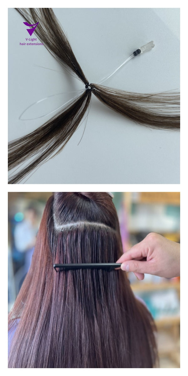 Our patented product V-Light hair extension system is designed to provide an innovative, efficient, lightweight and comfortable hair extension system for the hair extension industry. The using method of V-Light hair extension system is very flexible.