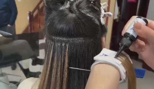 The V-Light hair extensions can last on head for 2-3 months. And the bond of the dedicated V-Light hair extensions is special processed. It's washable and high temperature resistant. It can be reused for 3-4 times during lifespan.